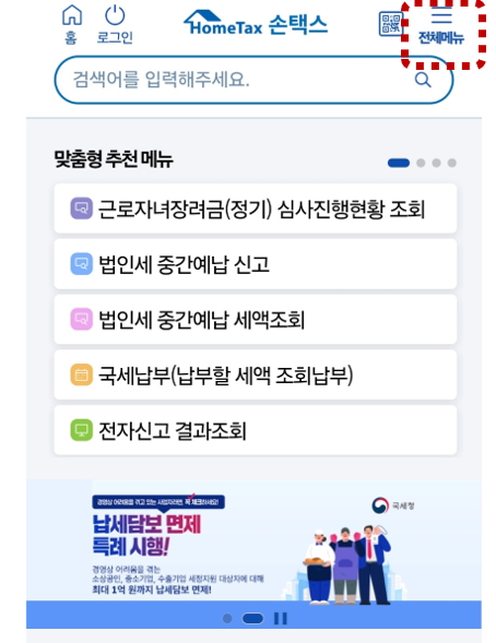 2. 오른쪽 상단 전체메뉴 클릭