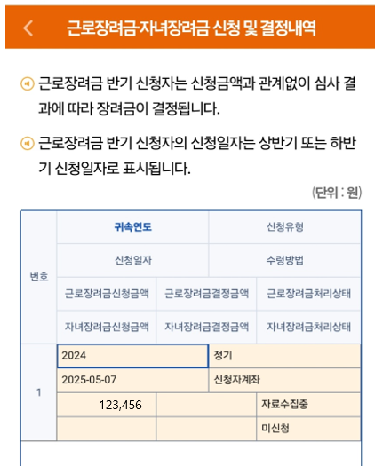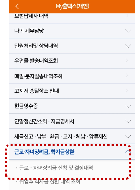 3. 근로·자녀장려금 신청 및 결정내역 선택