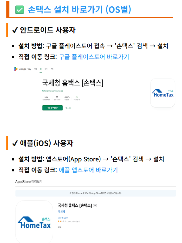 - 안드로이드: 구글 플레이스토어 → ‘손택스’ 검색 → 설치