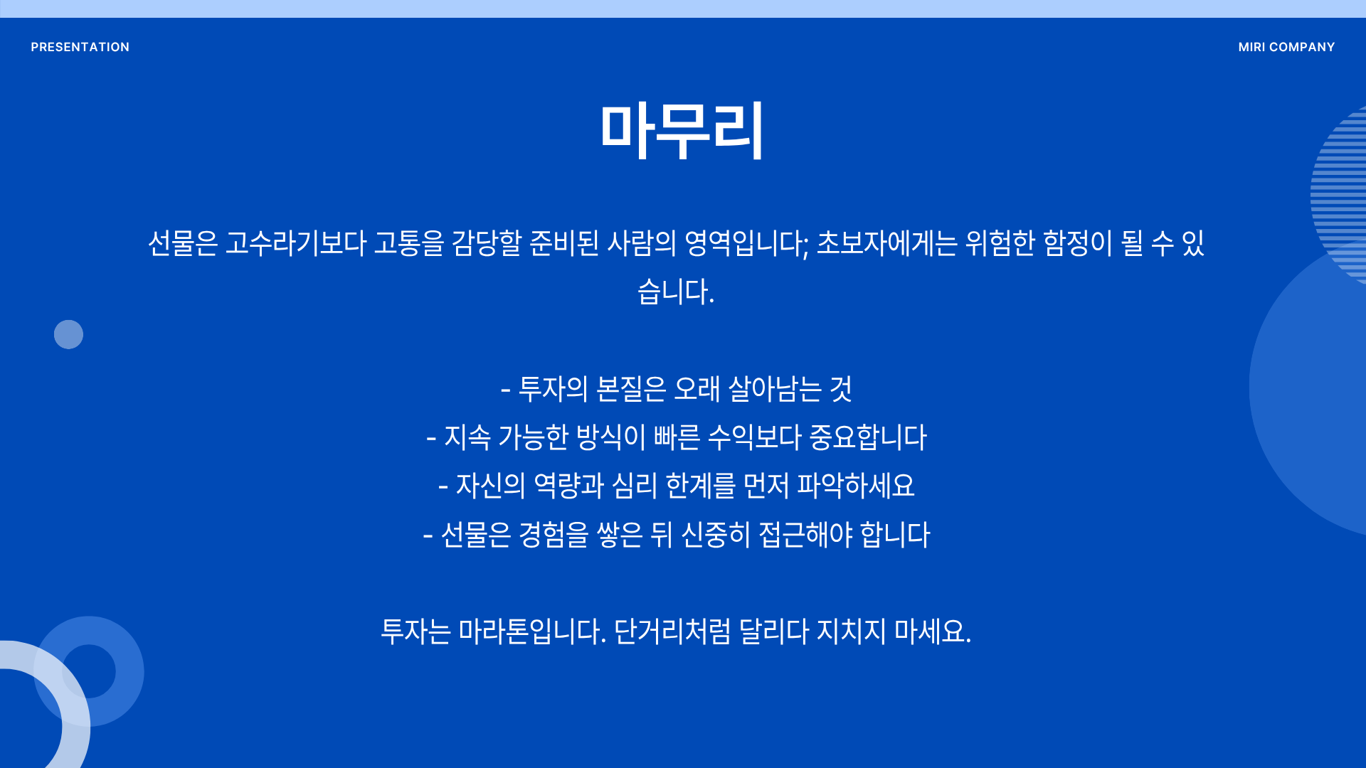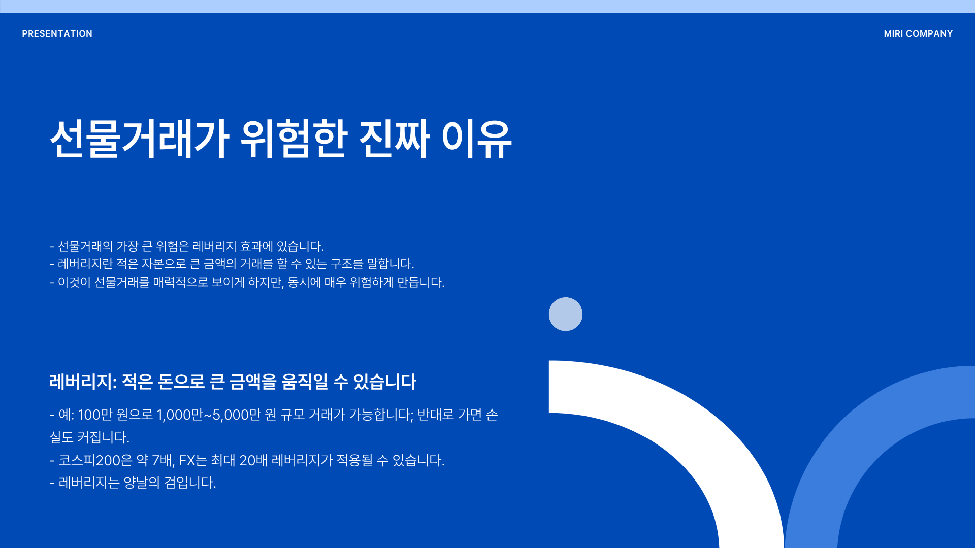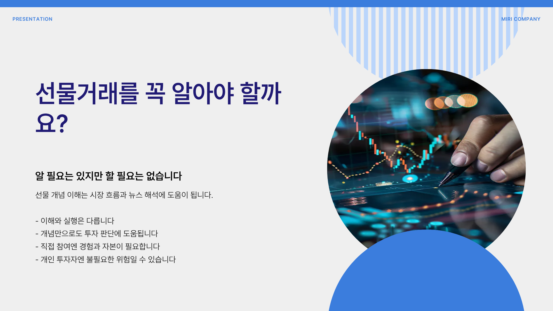 선물거래는 강력한 도구지만, 그만큼 위험 관리가 중요한 시장입니다.