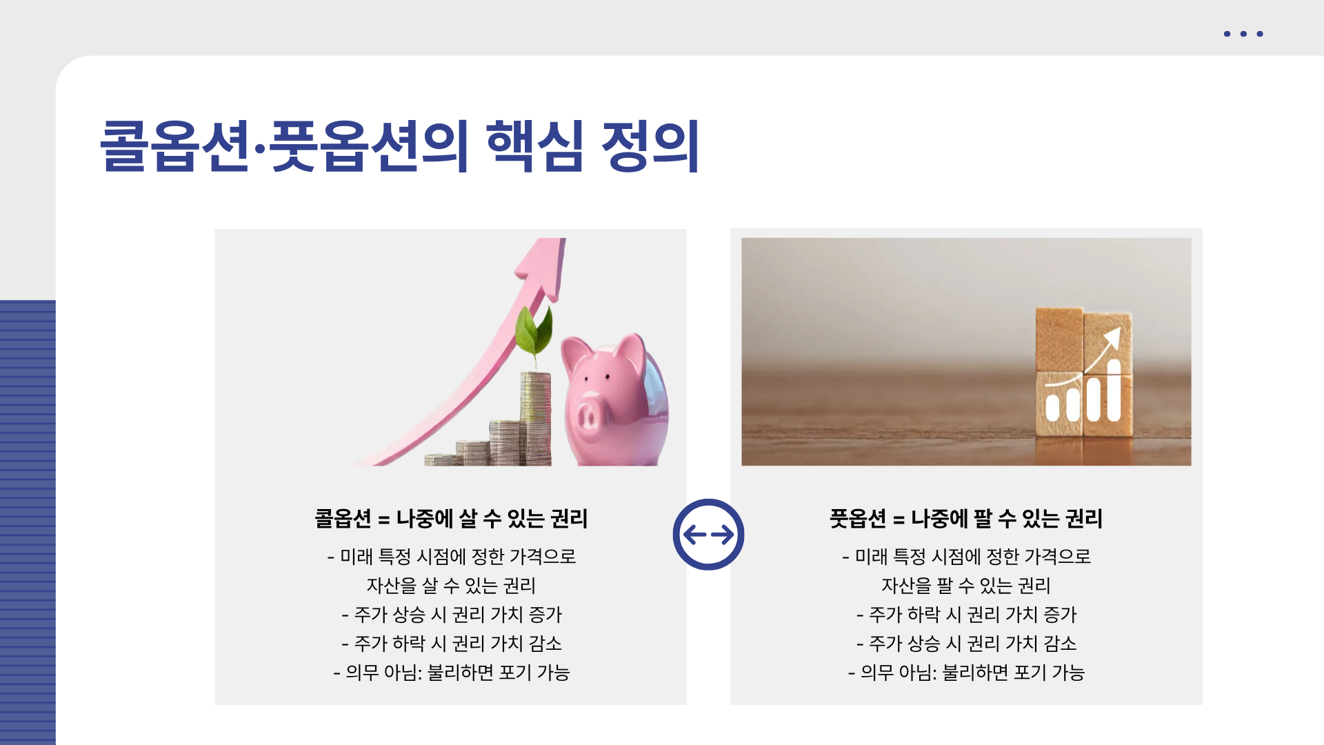 “콜옵션, 풋옵션… 말은 많이 듣는데 도대체 뭐가 뭔지 모르겠어요.”