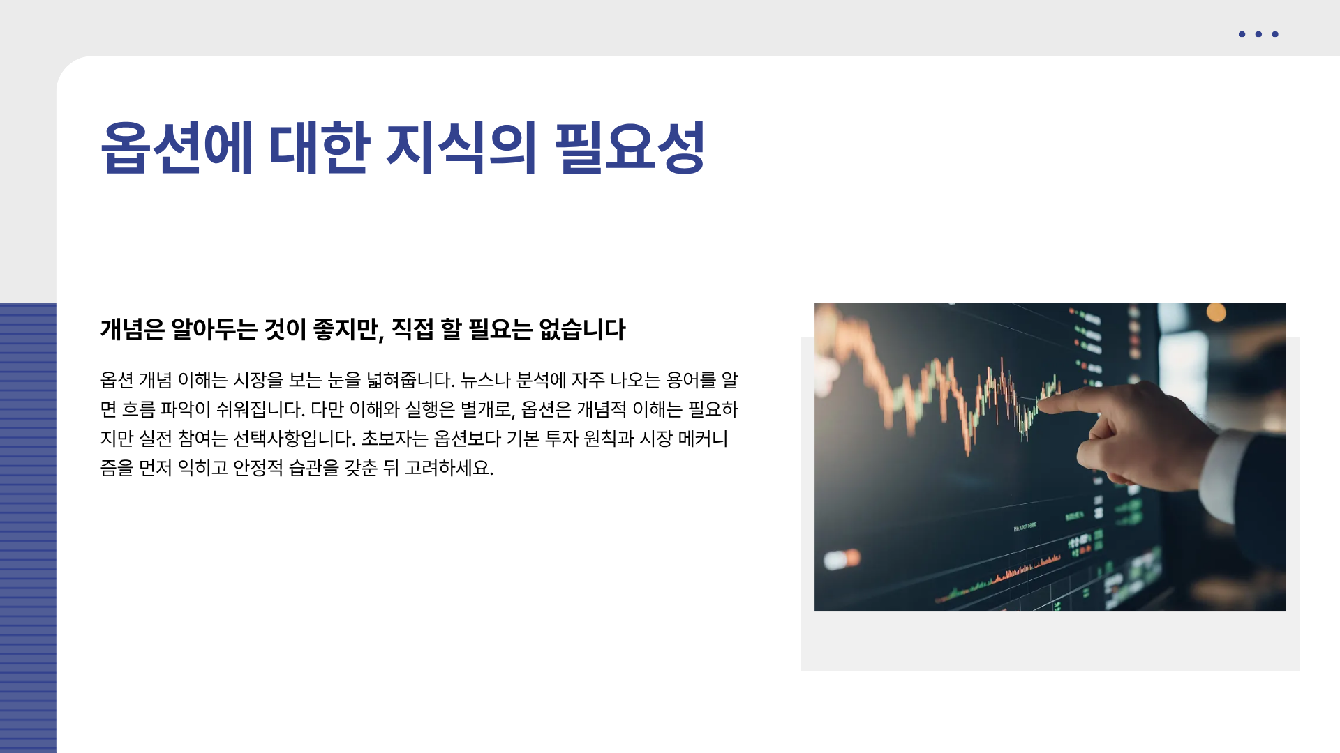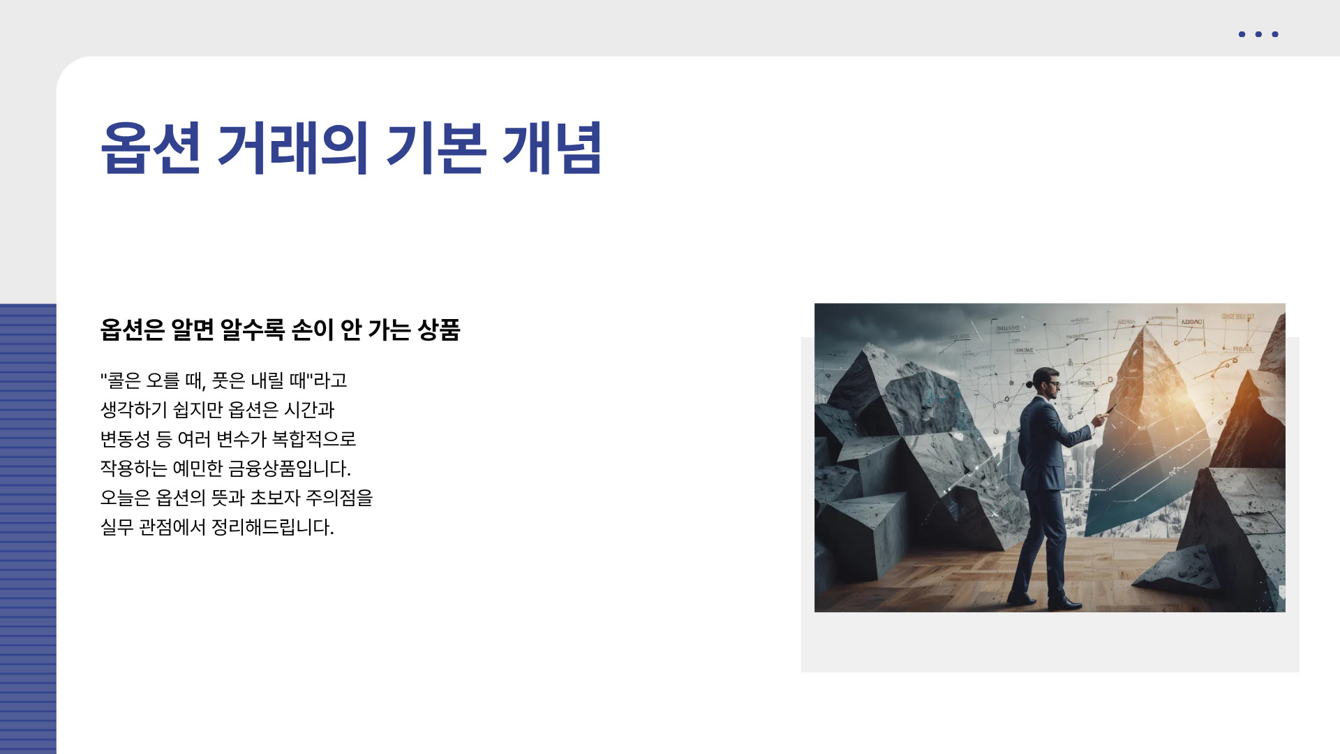 솔직히 말씀드리면 옵션은 난이도가 있는 시장입니다.